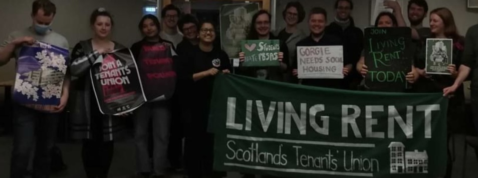 Poster for Living Rent. Living Rent is a tenants' union in Scotland.